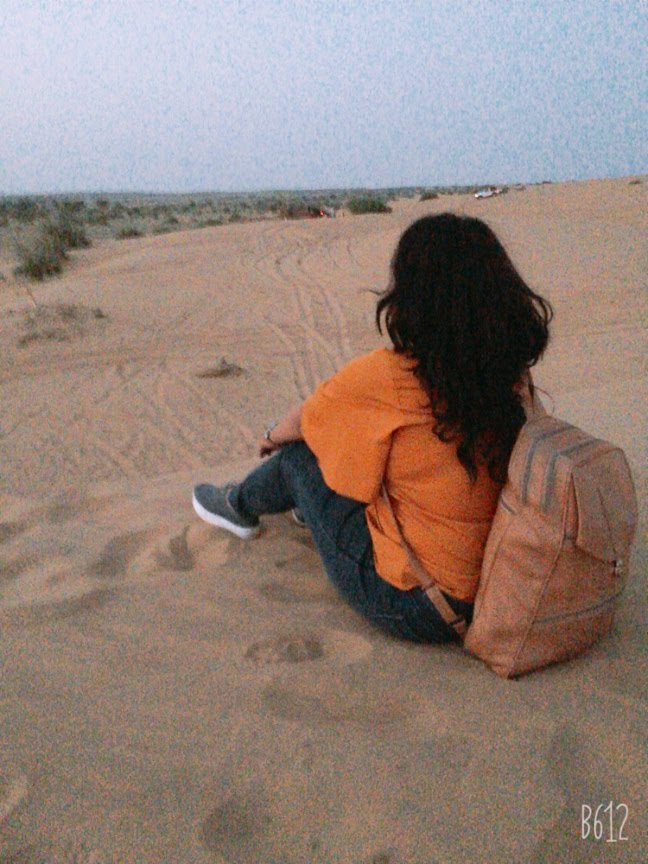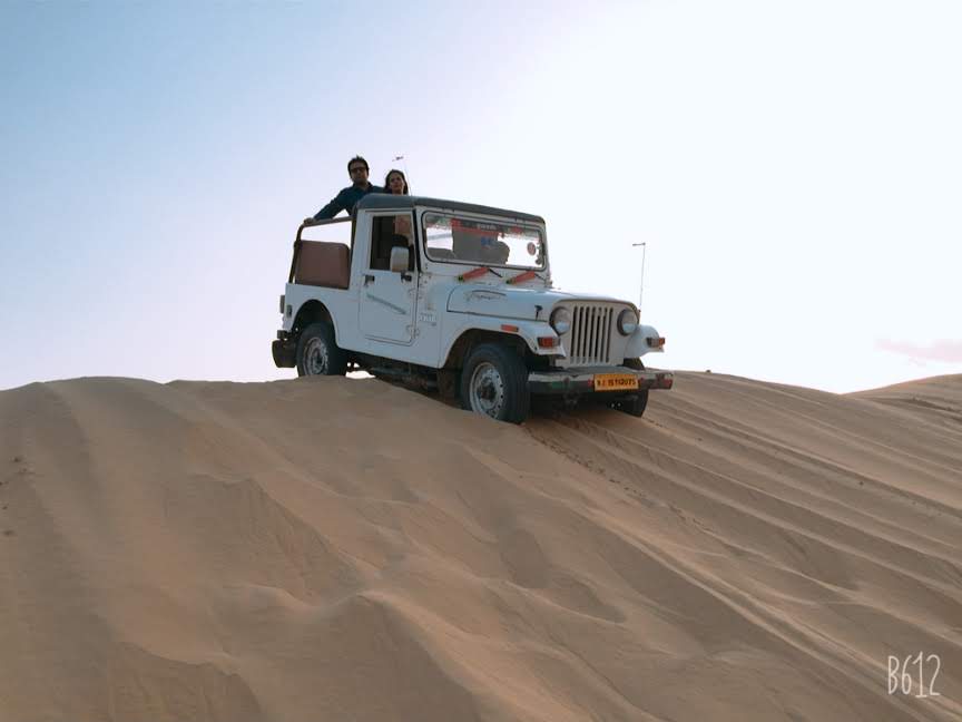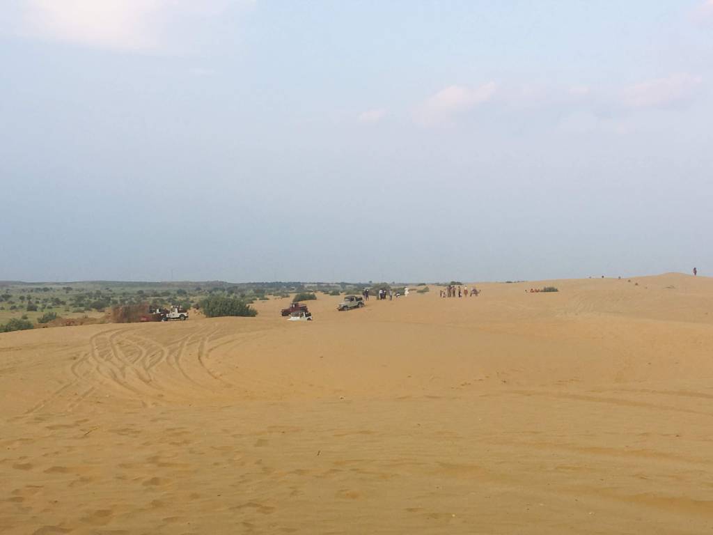 The moment my jeep safari start in Thar desert I felt so scared and uncomfortable due to ups and downs but slowly got used to it. It feels like riding on a see-saw and the speed of the Jeep gave me goosebumps whenever I try to stand at the back the speed full me down and my drive keep on encouraging me to stand and enjoy the ride. We stopped to take some photographs. This was my first time in a desert and a landscape was something new to me. The sand dunes looked beautiful with the natural patterns upon them caused by the wind.